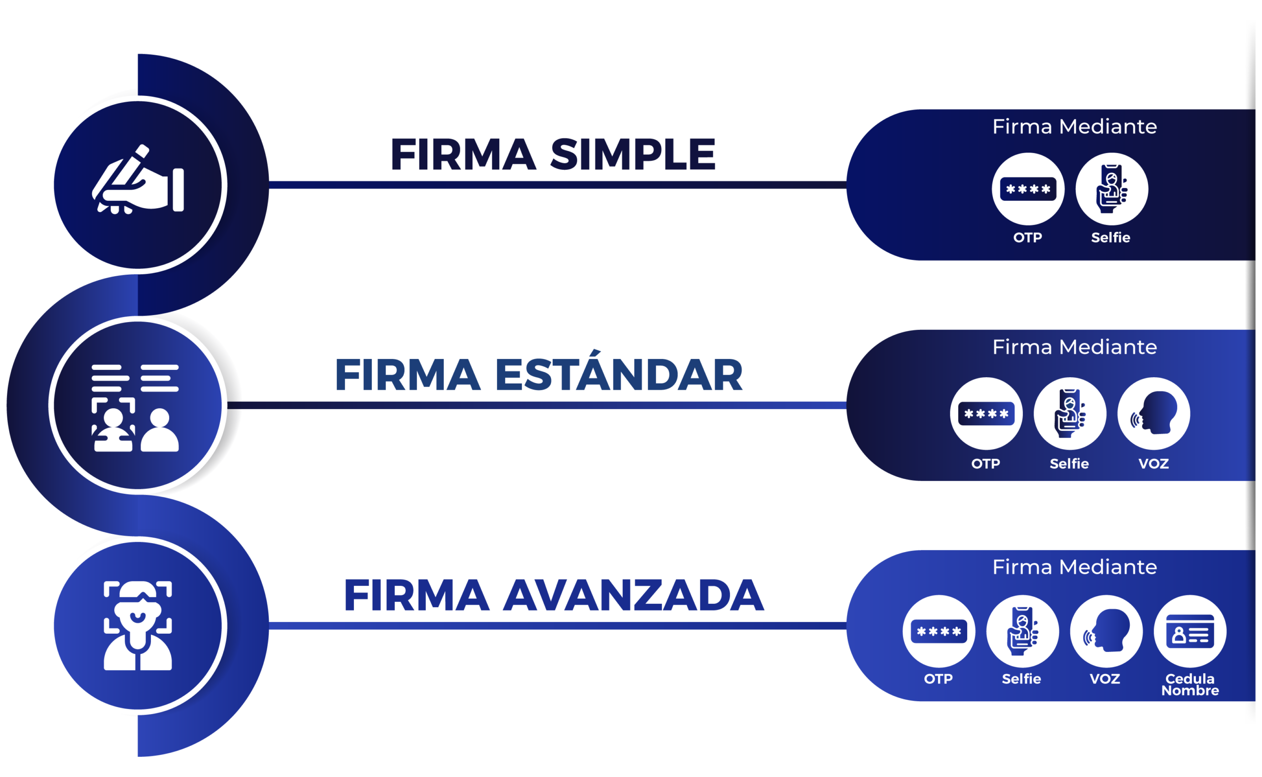 Mediante altos estándares tecnológicos, VOZDATA identifica plenamente la identidad de los firmantes, contando con método de firma electrónica idóneo y seguro haciendo uso de un código OTP mediante voz, SMS o WhatsApp, el cual es una contraseña de un único uso para la acreditación de la firma electrónica, identificando además la dirección IP del dispositivo que utilicen los firmantes y dejando la trazabilidad detallada de la transacción en la evidencia digital de cada documento firmado.